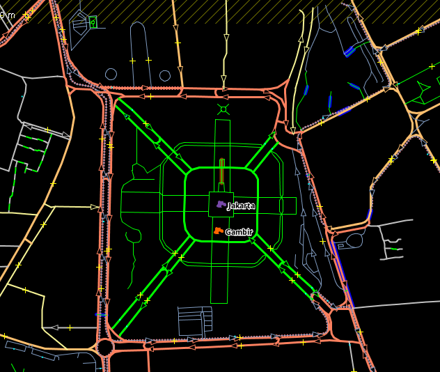After the JOSM Editor started, open the .osm file, which is the result of road networks extraction, by clicking File - Open. The picture below is the example of road networks extraction around the Monumen Nasional in Jakarta.